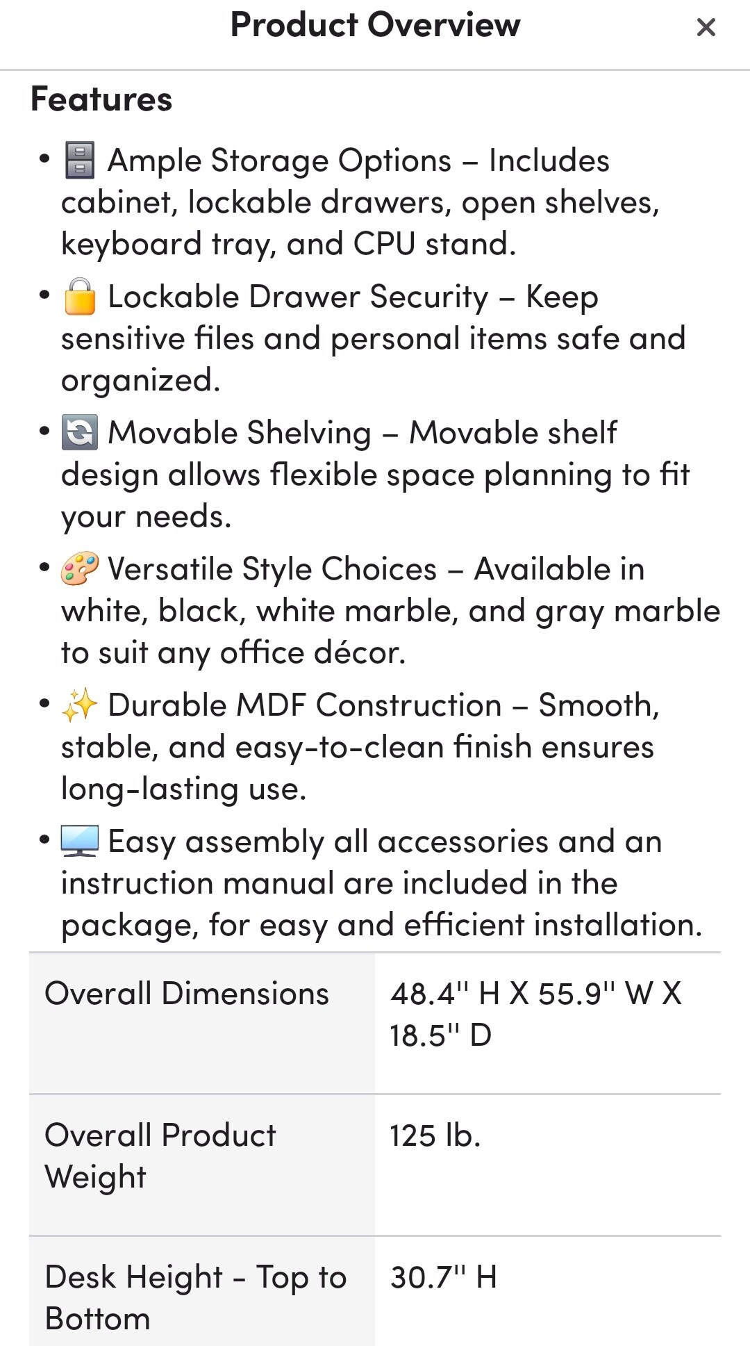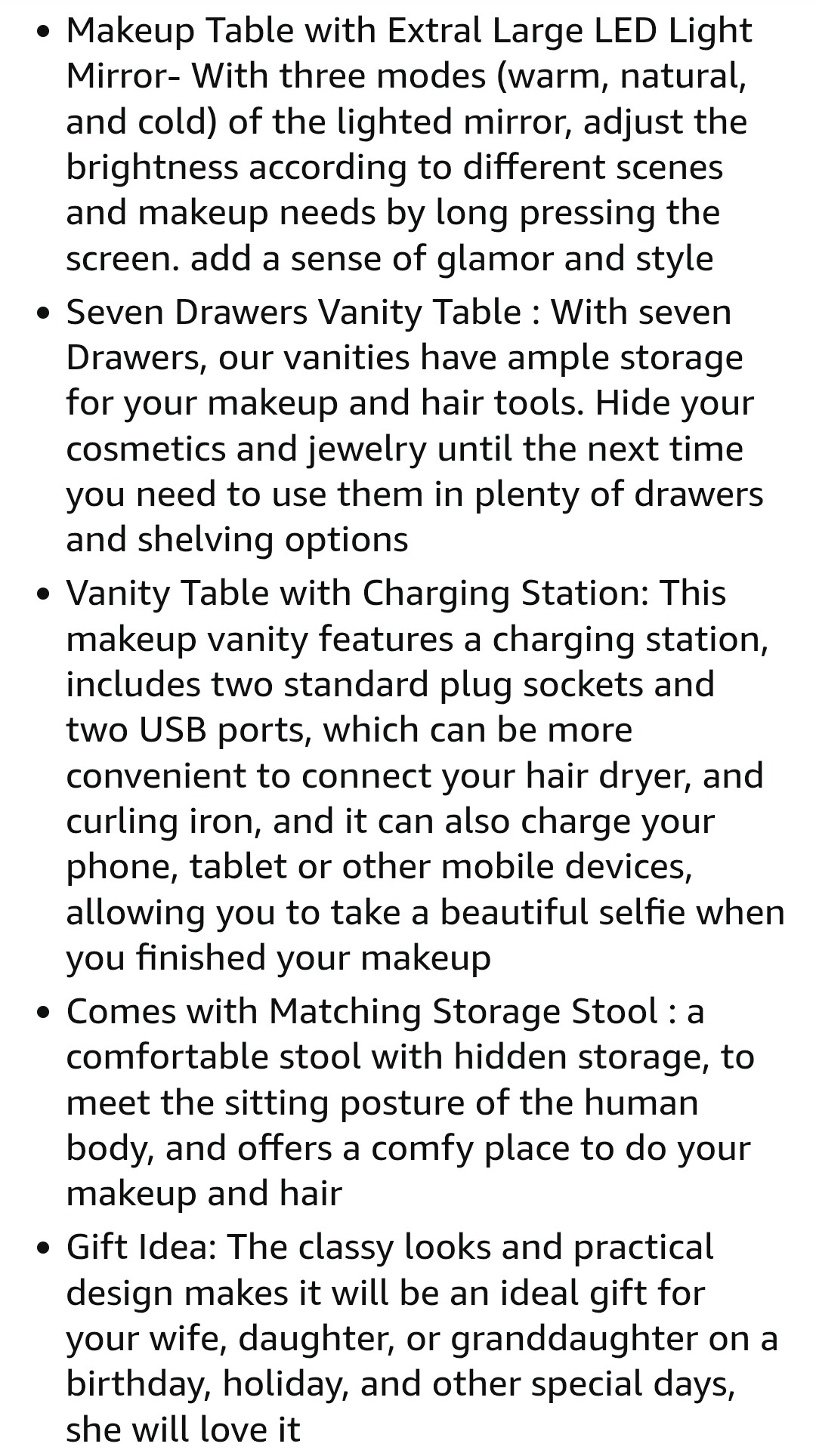 2. 화이트 LED 화장대 서랍 6칸 - 80불