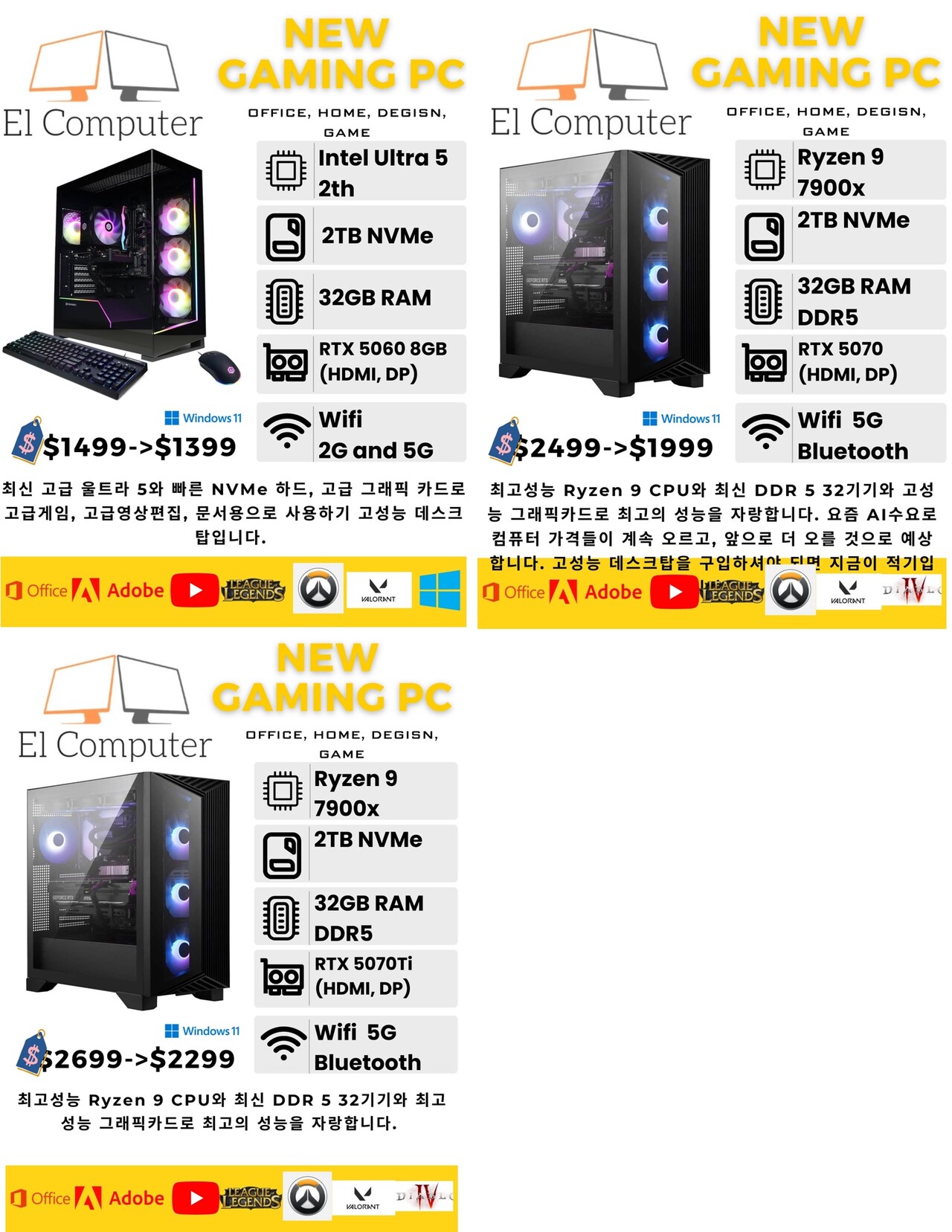 AI시대 이제는 AI를 얼마나 잘 활용하는가에 따라서 각 분야에서 경쟁력이 달라집니다. AI에서 경쟁력이 있기 위해서 고성능 컴퓨터로 빠르게 AI를 사용해야 합니다. 엘컴퓨터는 AI에 맞는 고성능 컴퓨터들을 판매합니다.