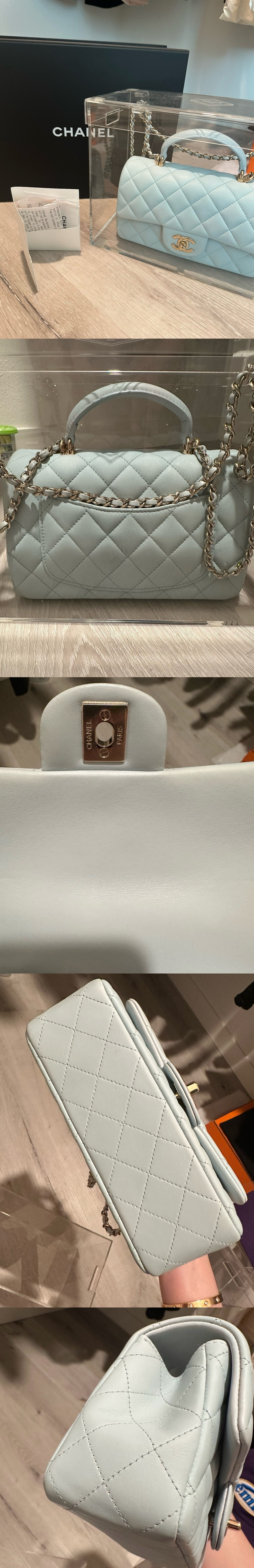 정품 샤넬 탑핸들 뉴미니 플랩백 (라이트블루)