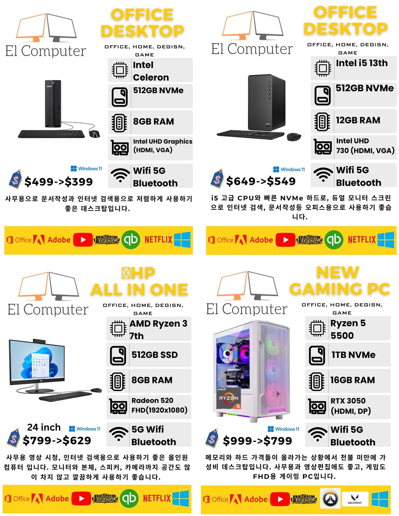 New 검퓨터는 물론, 중고 컴퓨터들(윈도우, 맥)도 좋은 컨디션에 프로그램 설치와 최적화되어서 최저가에 판매합니다. “비즈니스란에 컴엘258”로 검색하셔서 가격링크 비교해보세요.
