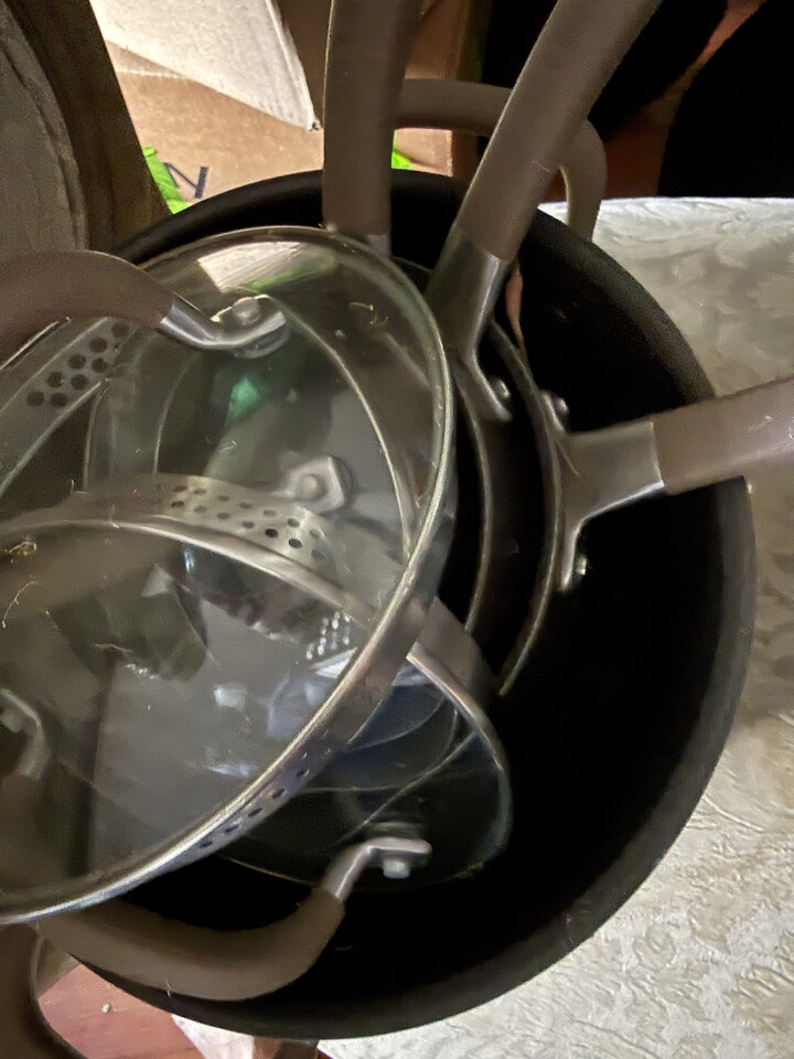 후라이팬만 없이 냄비뚜껑 전부 포함해서 60불