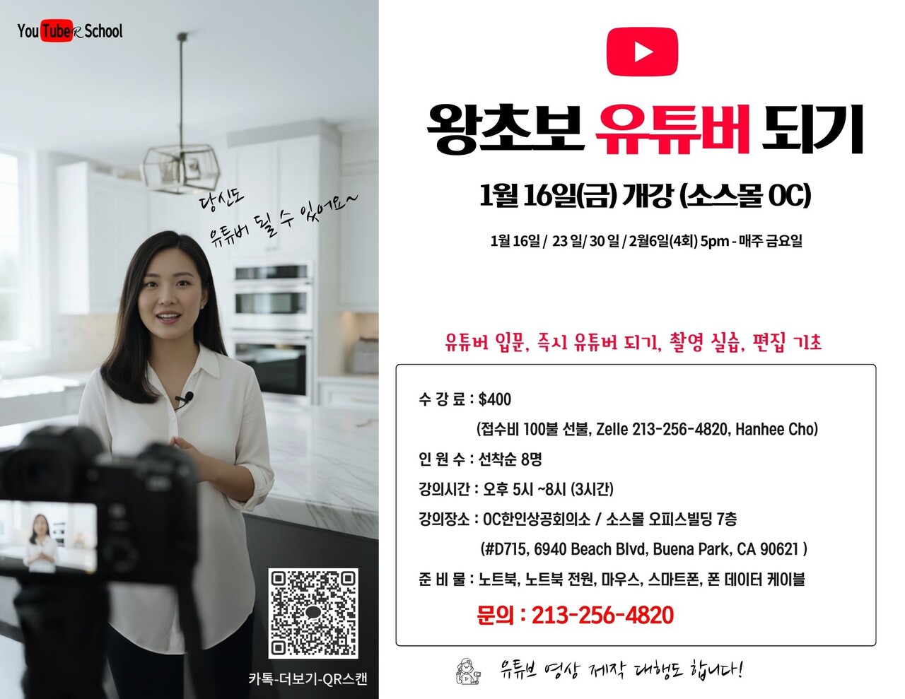 강의 장소**: OC 한인상공회의소 / 소스몰 오피스 빌딩 7층 #D715