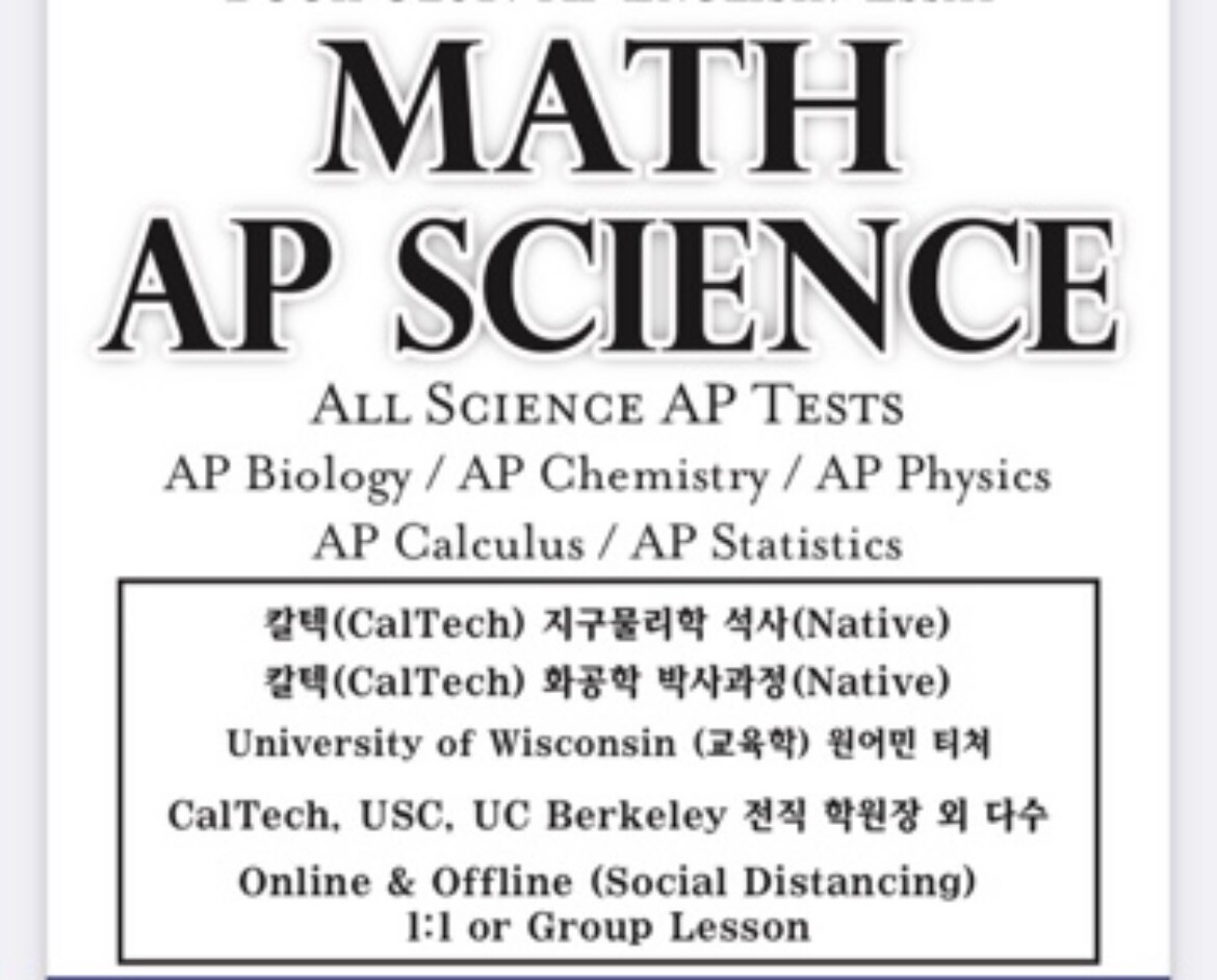 칼텍 박사 / 수학 ,AP Calculus,Statistics, Physics, Chem