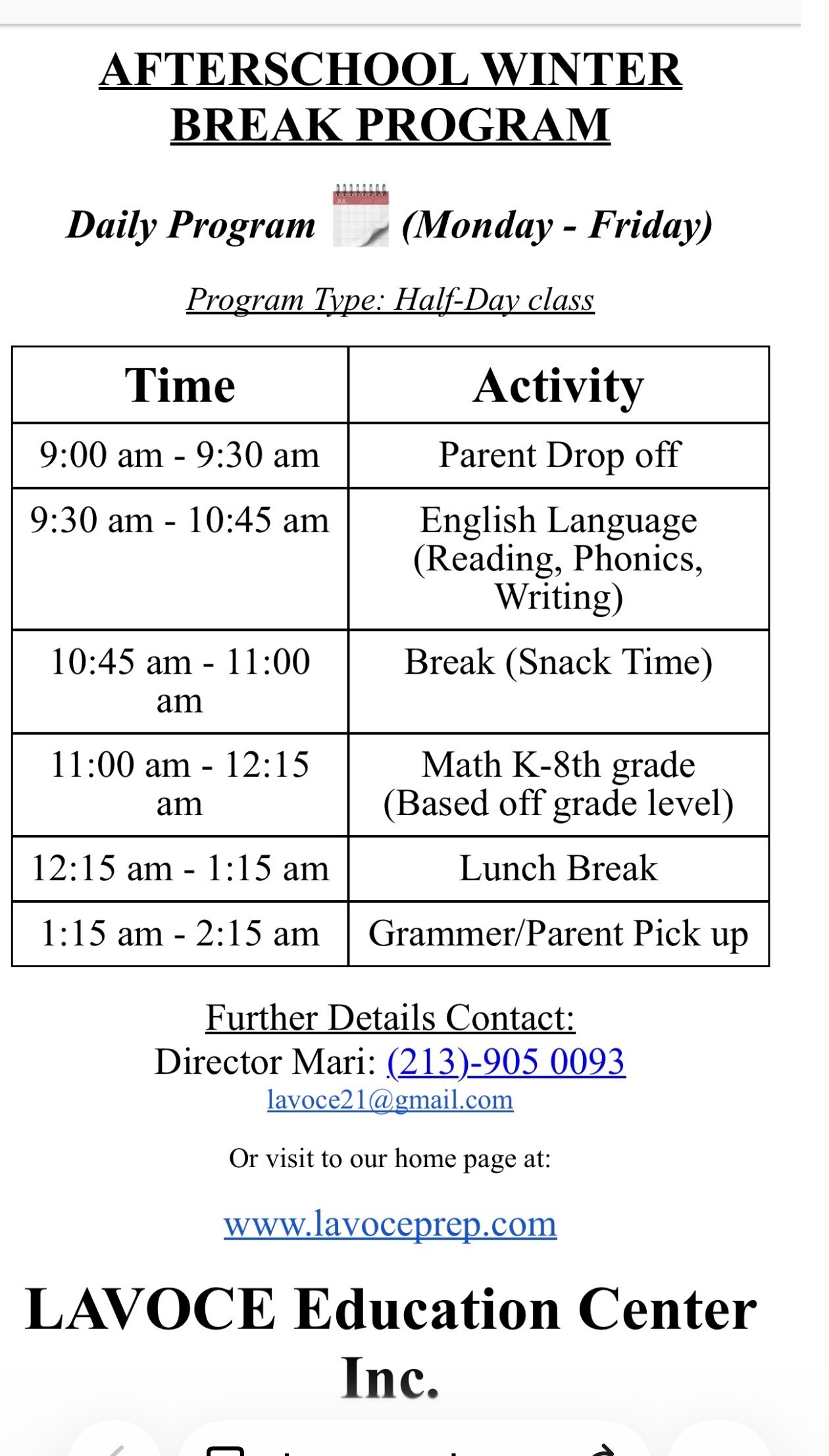 시간 ) Monday _Friday _3pm -6pm / Winter break _All day class ????