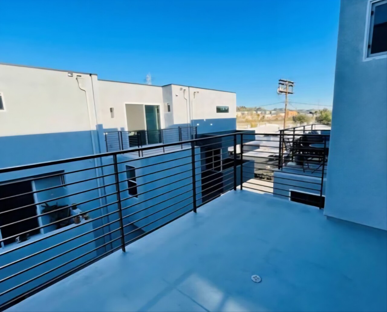 꼭대기 층에는 넓은 발코니와 개방형 주방과 거실,
