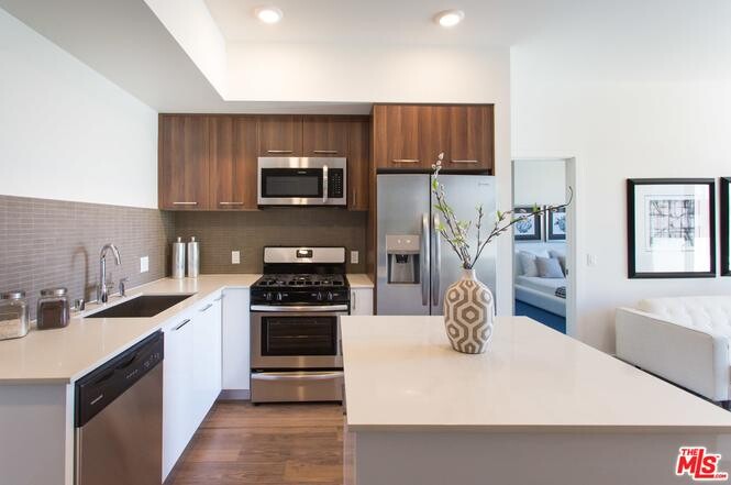-Premium quartz counter top with tile back splash in kitchen
