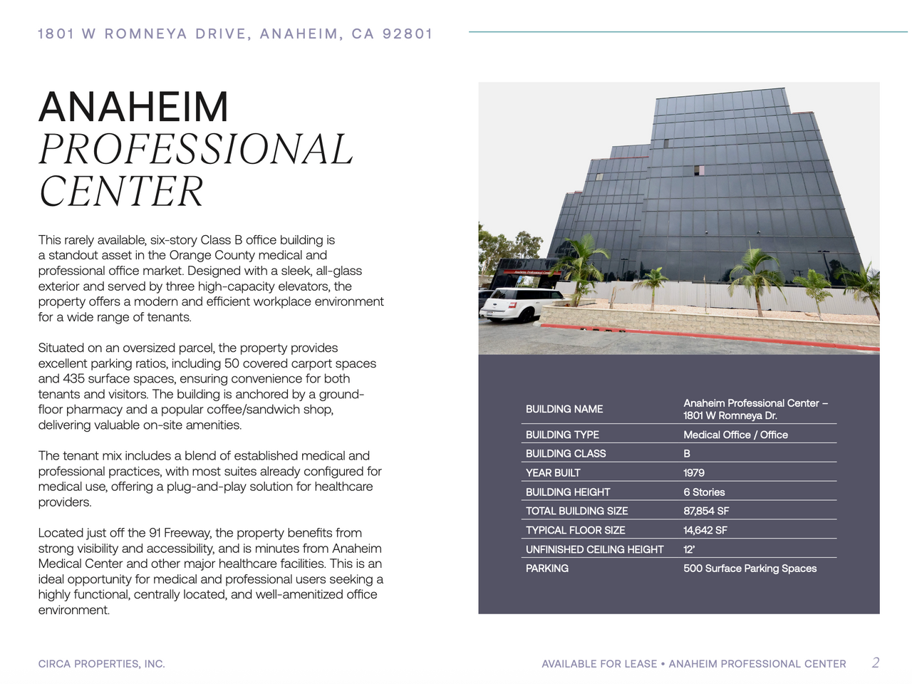 Anaheim Medical Office 사무실을 리스합니다.