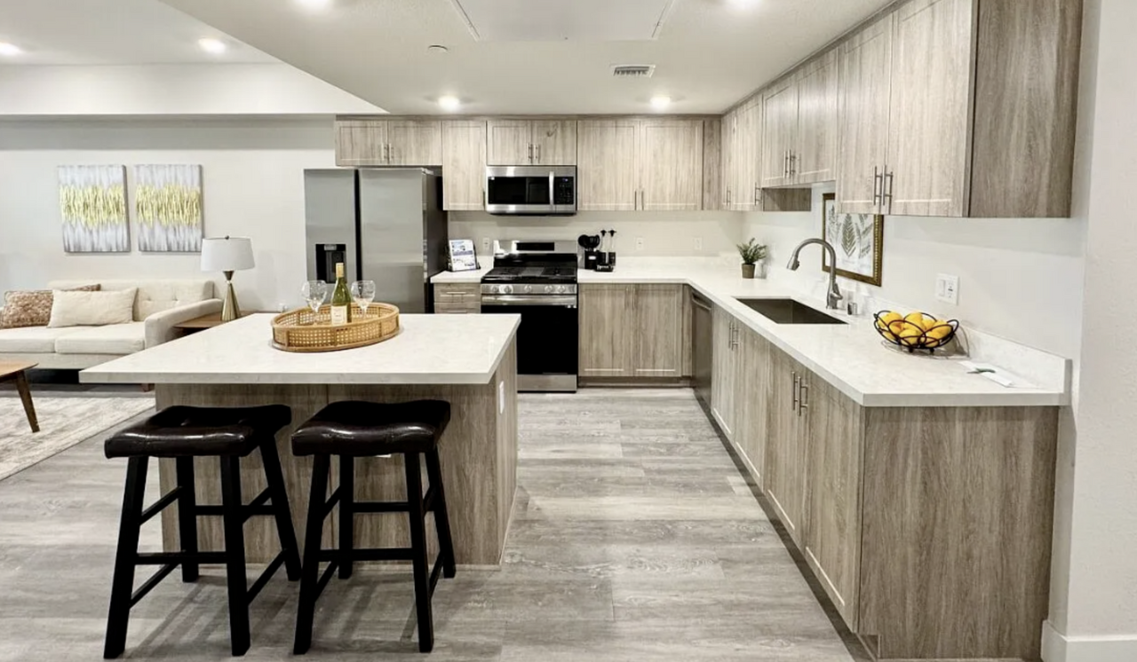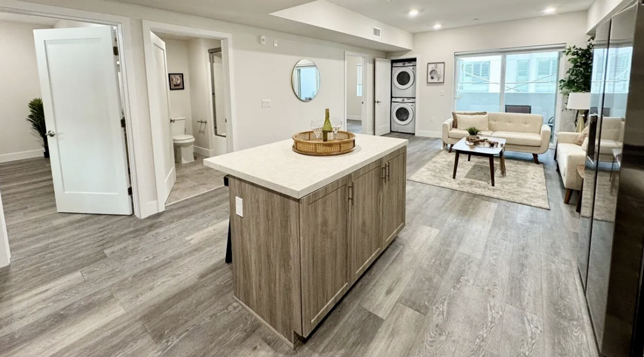 원래 콘도로 지었다가 아파트로 바뀐 넓은 구조에 아일랜드 키친있는 깔끔하고 모던한 새 아파트