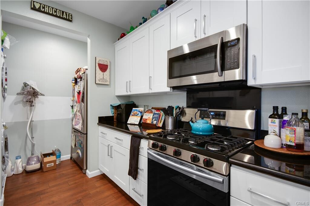 높은천장에 주방은 granite 카운터탑과 스테인리스 가전이 갖추어져 있습니다.