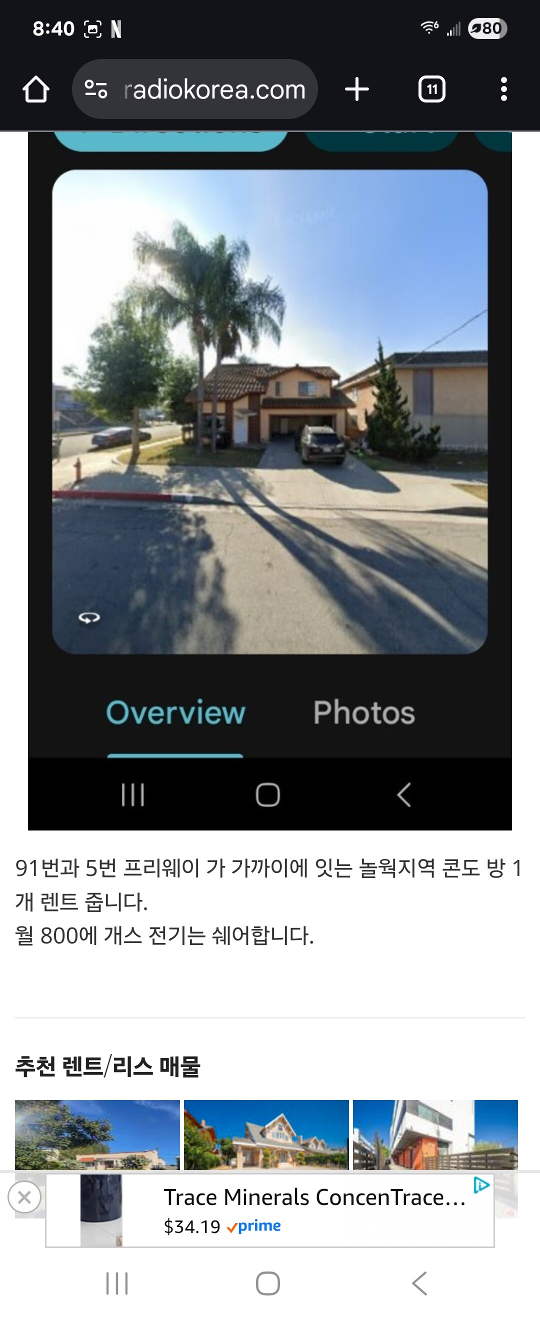 91번 프리웨이와 5번 프리웨이가 가까이 잇는 놀웍지역 방하나 렌트 놉니다.