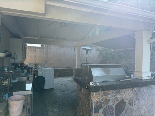밖에서 들어오시게 되면, 뒤마당의 outdoor kitchenette 형식의 sink, cabinet, and table 과 작은 냉장고가 마련이 되어 잇습니다. 그리고, 단독으로 쓰실수 있는 세탁기도 준비되어 있구요.