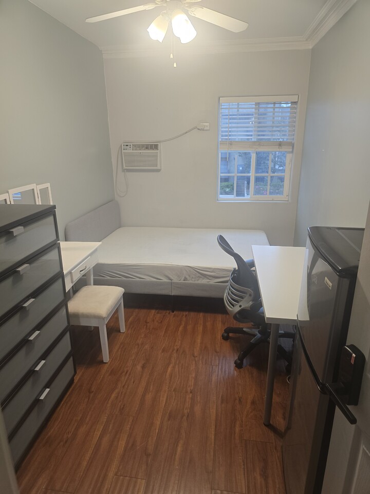 에어컨, 침대, 책상, 옷장, 서랍장, 냉장고등 모두 구비되어있습니다.
