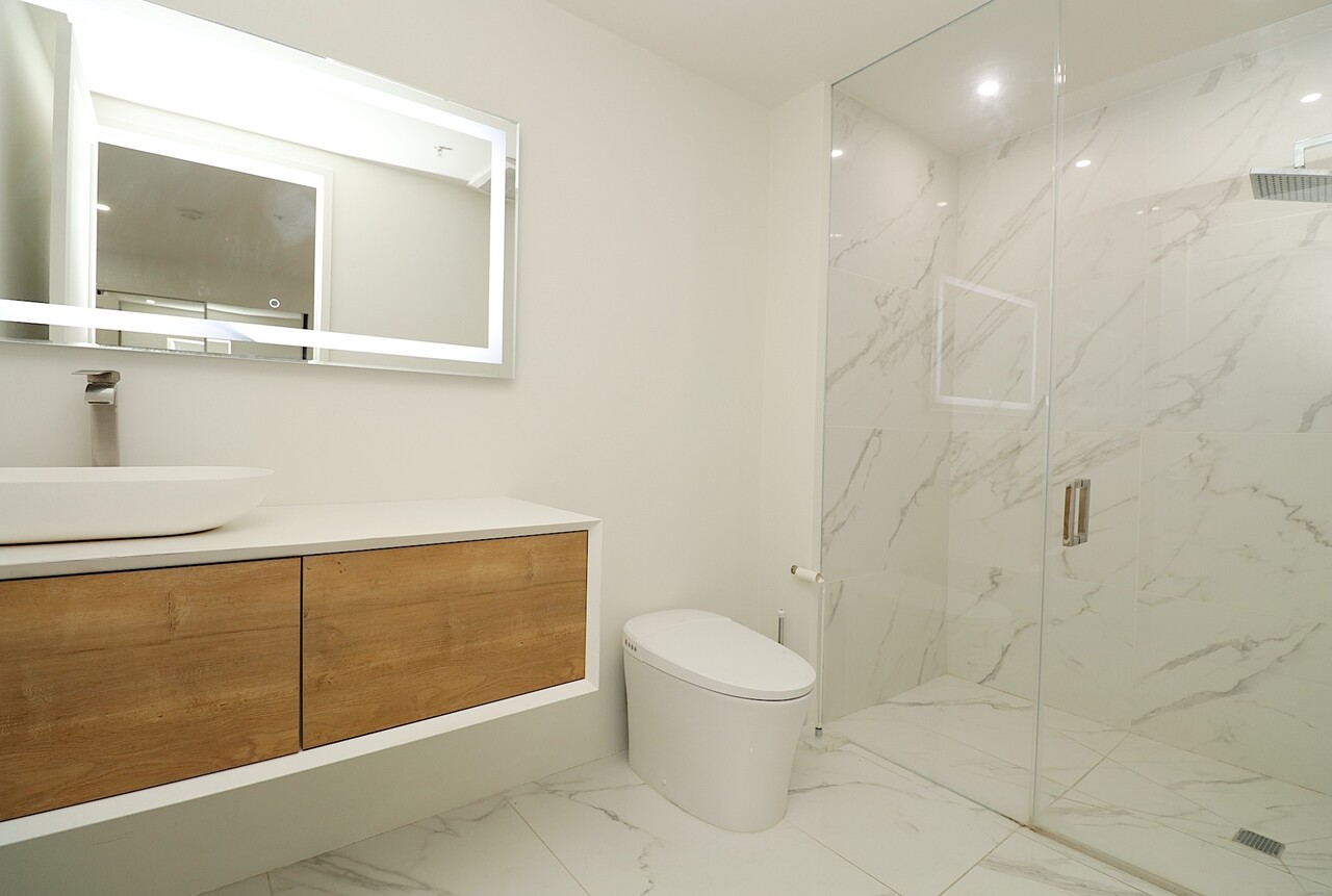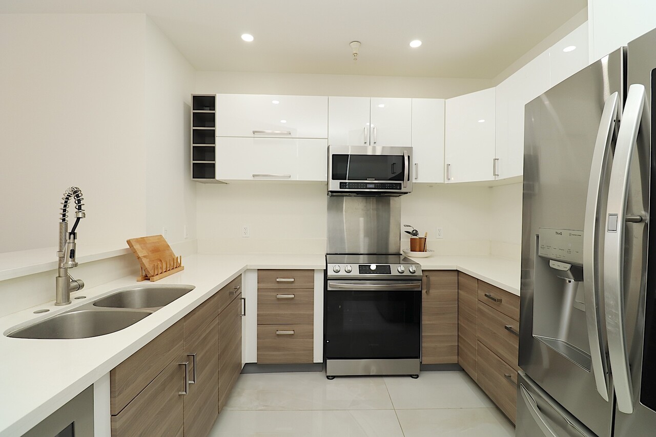 높은천정, 넓은 리빙룸과 다이닝공간이 있는 오픈 구조로 풍부한 자연채광과 시원한 통풍이 특징입니다. 그리고 4년전 집전체를 고급스럽게 현대적인 마감재를 설치하였으며 두 개의 침실은 프라이버시를 고려해 분리되여 있는 유닛입니다.