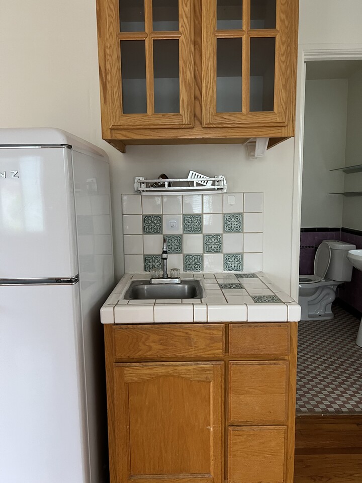 싱크, 케비넷, 냉장고 & hot pad 있어서 간단한 취사 가능.