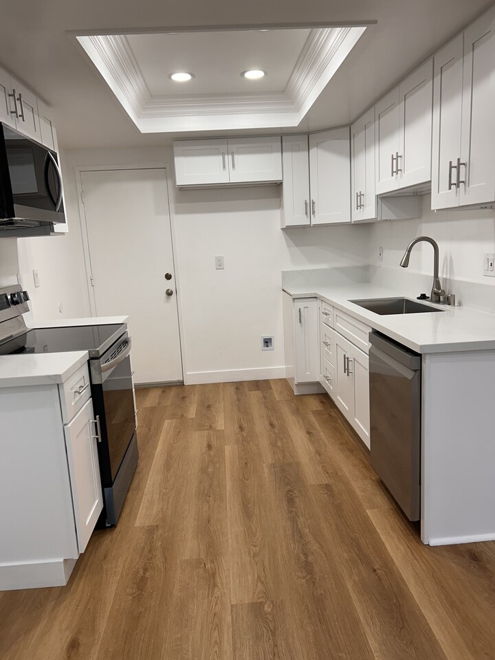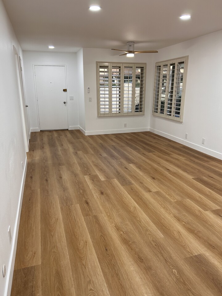 Beautifully remodeled 2 bed, 2 bath single-story townhome in the desirable Cypress Monterey community. This bright single story unit features a brand-new kitchen, new flooring, fresh paint, recessed lighting, ceiling fans, shutters, dual-pane windows, a new water tank and central A/C and heater. The primary bedroom includes a walk-in closet and the second bed room includes a closet with a new sliding doors. Also, this home features updated two bathrooms with new vanities and fixtures.