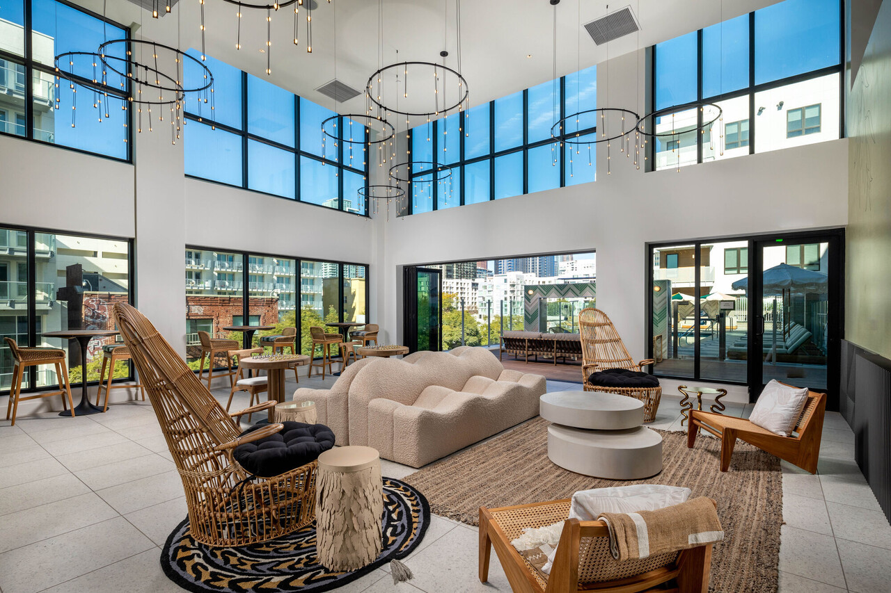 pods, booths, patio 공간이 있는 Library 공동 작업실.