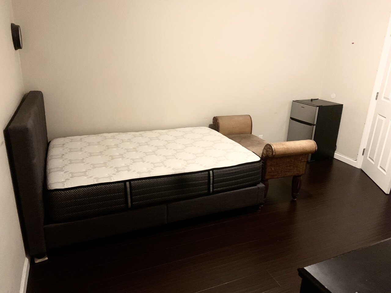 - 방에 딸린 화장실 포함, 침대+서랍장+옷장+작은 냉장고 제공