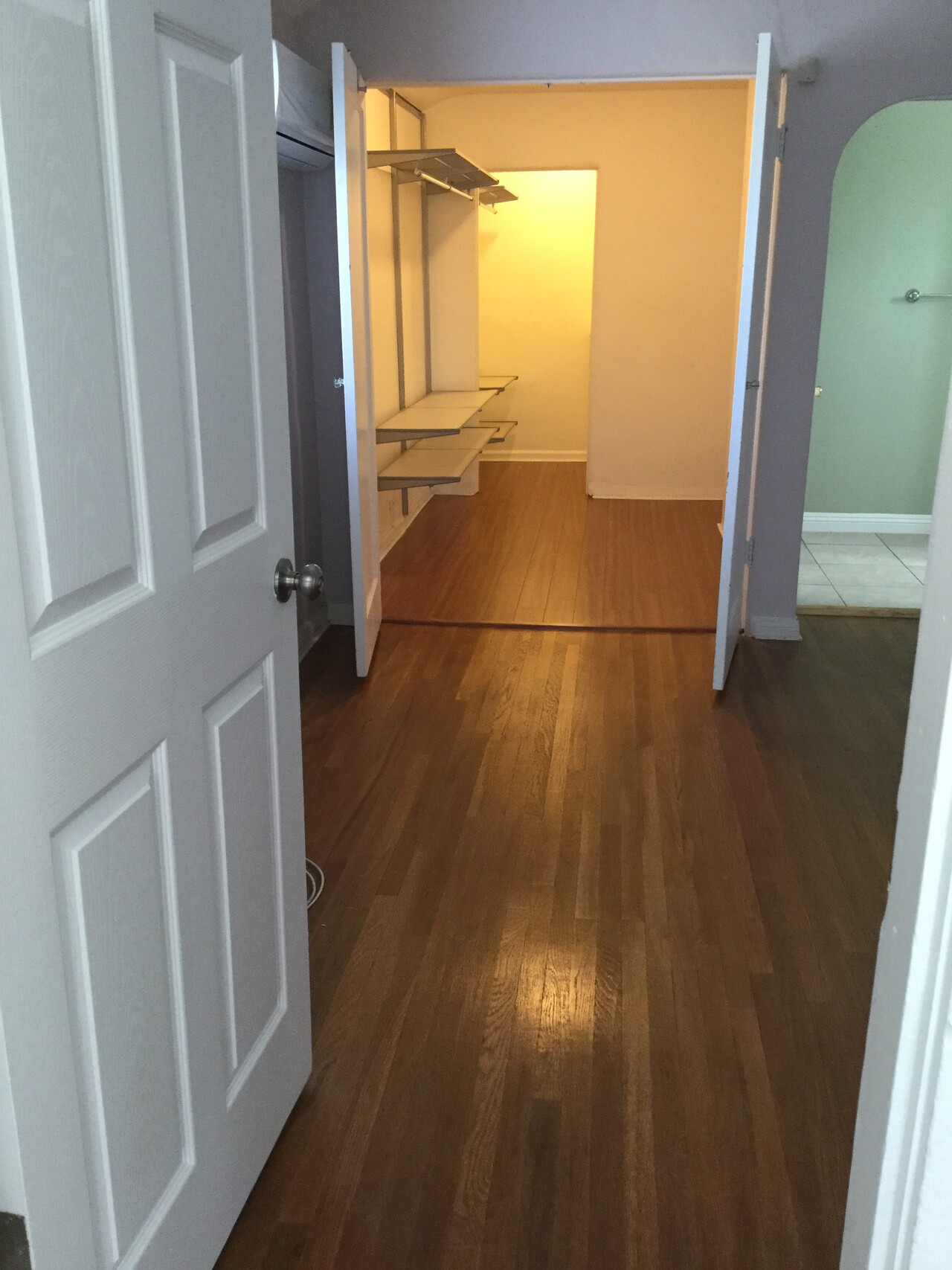환하고 밝은 실내, 나무 마루, 큰옷장