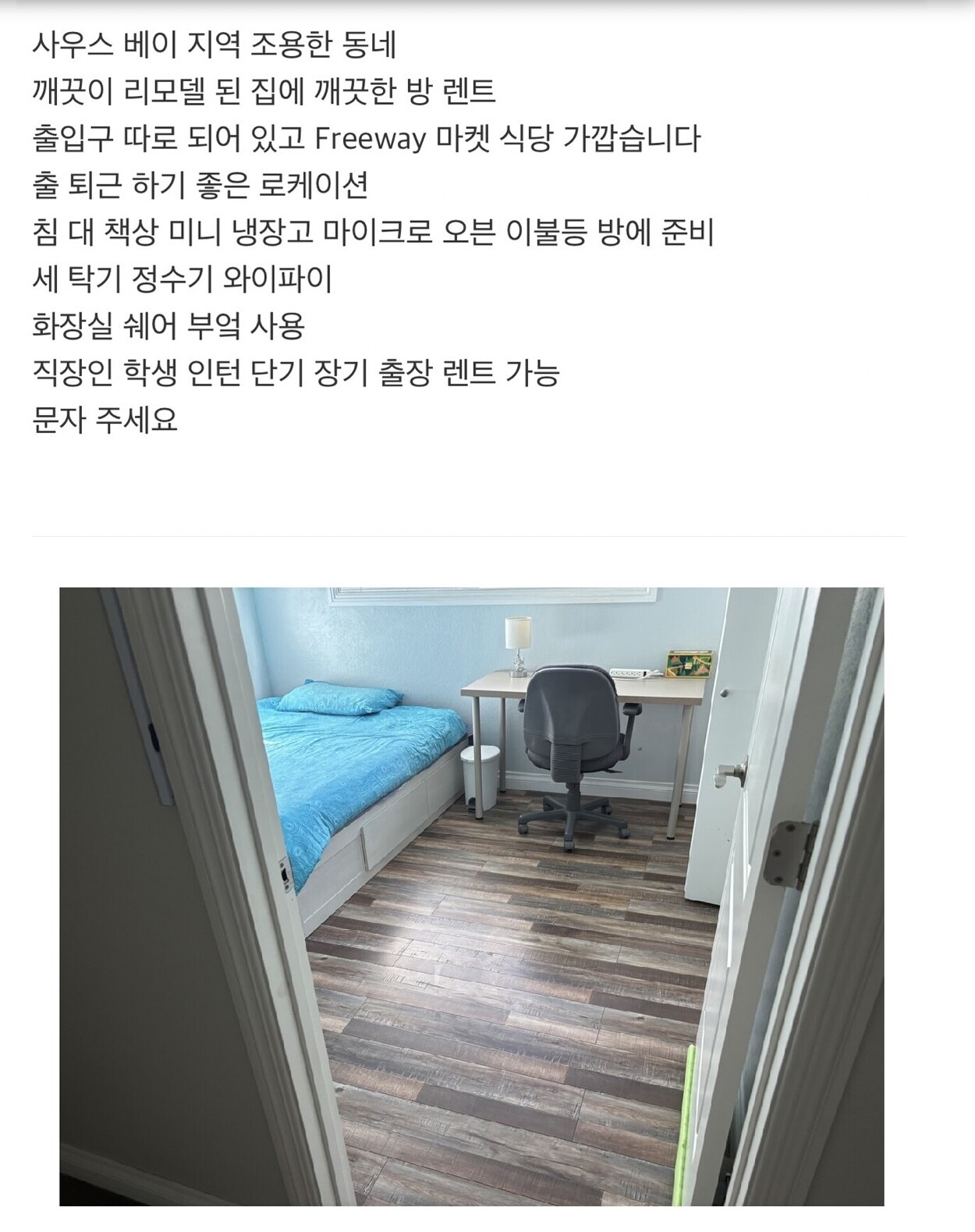 방 렌트 합니다 조용한 분위기 집 입니다