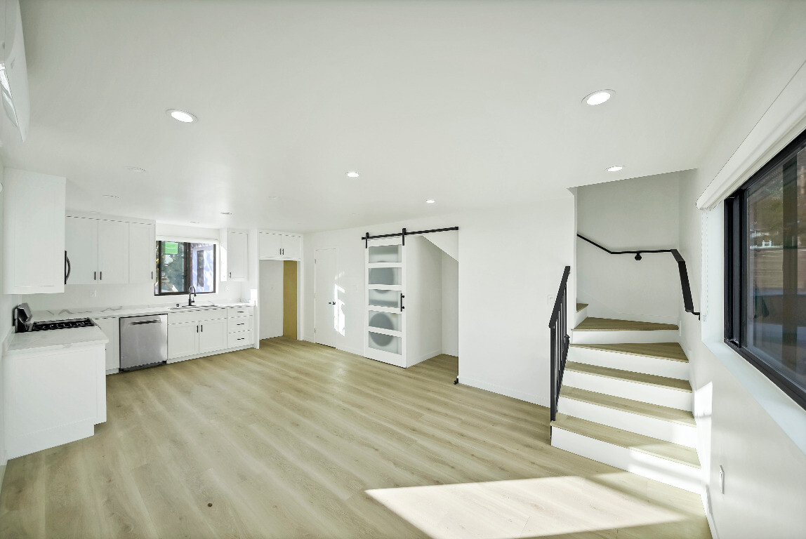 - Open-concept living space: 하드우드 바닥 & 풍부한 자연 채광
