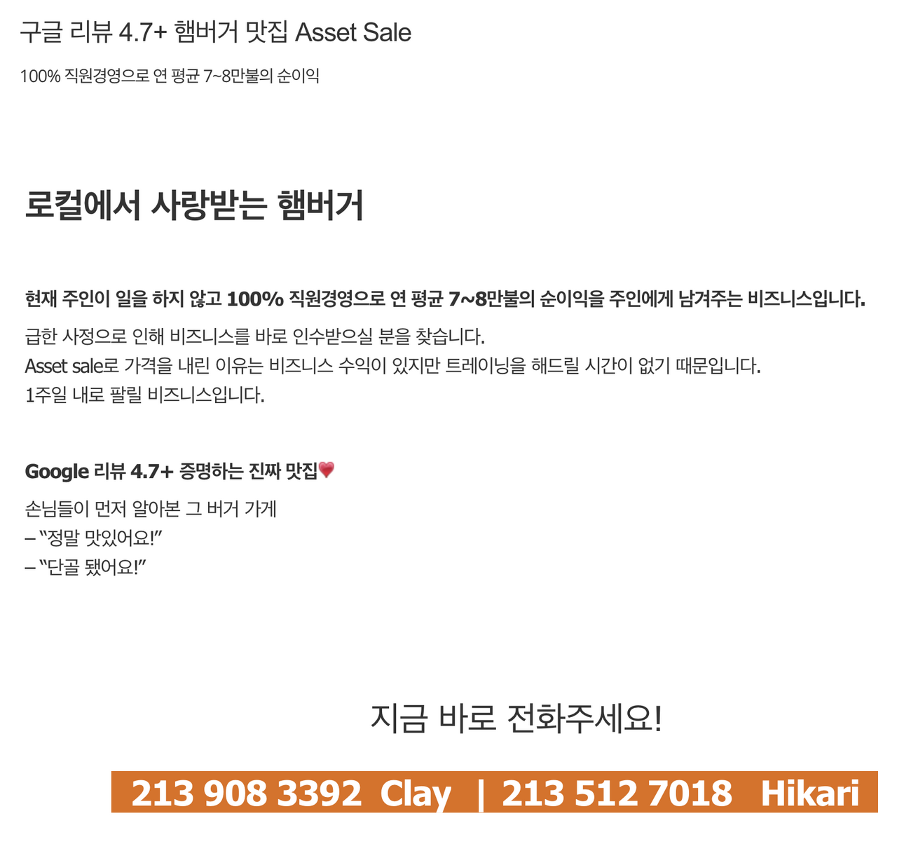 구글 리뷰 4.7+ 햄버거 맛집 Asset Sale