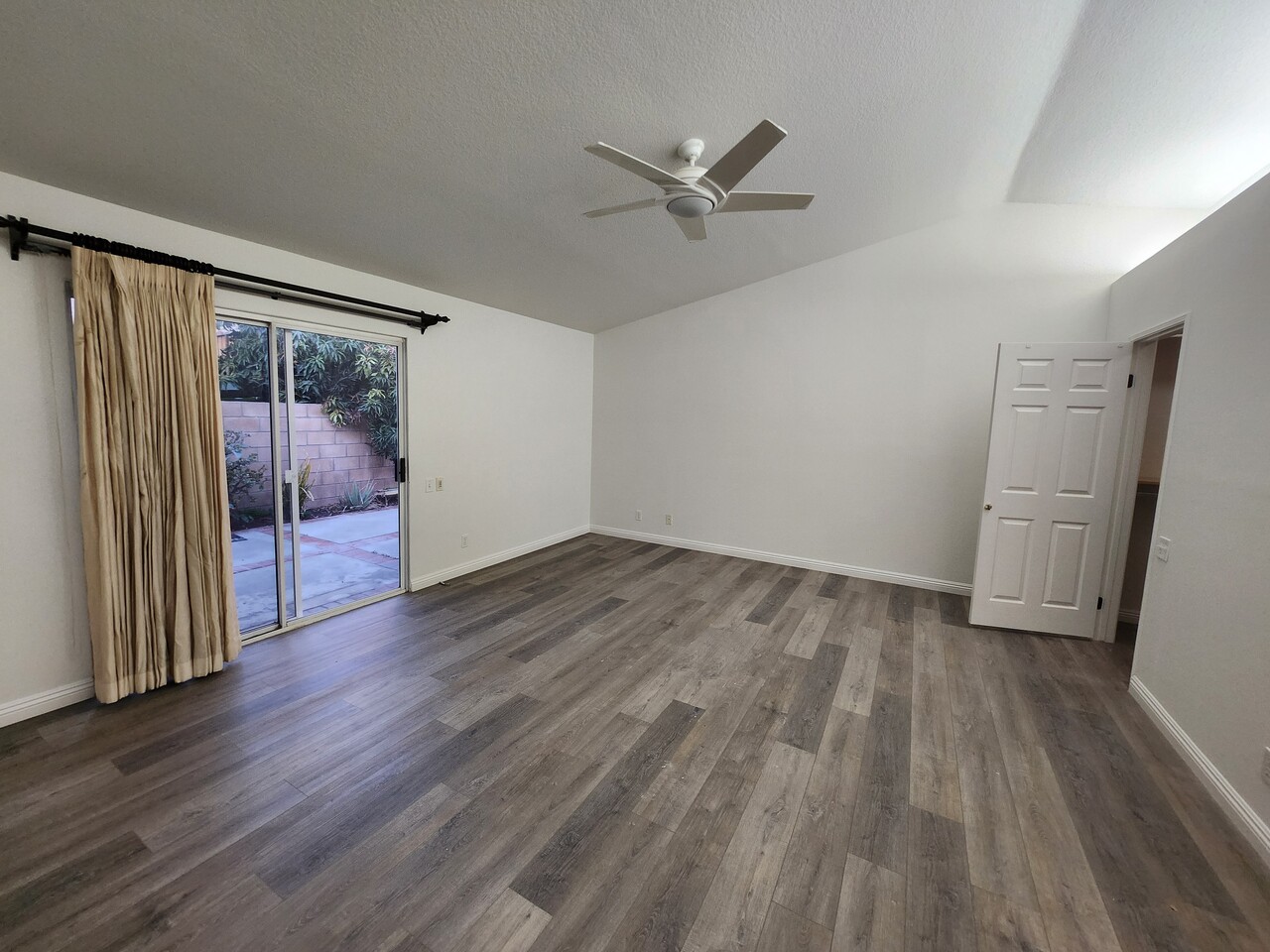 Single-story 3BR/2BA home with 1,727 sq. ft. in a secure gated community near La Habra Costco. Features laminate wood flooring throughout, quartz kitchen countertops, cozy patio, and 2-car garage. Built in 1989. HOA includes pool access.