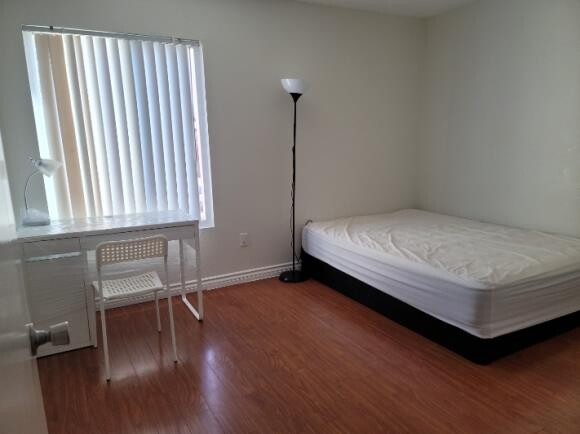 Bed 1 Bath 중 동남향 밝고 큰 방이며, 침대, 책상, 책장, 의자 등 기본 가구 제공하며, 클라짓이 양팔 너비만큼 큰 사이즈로 2개 있어 수납이 충분합니다.