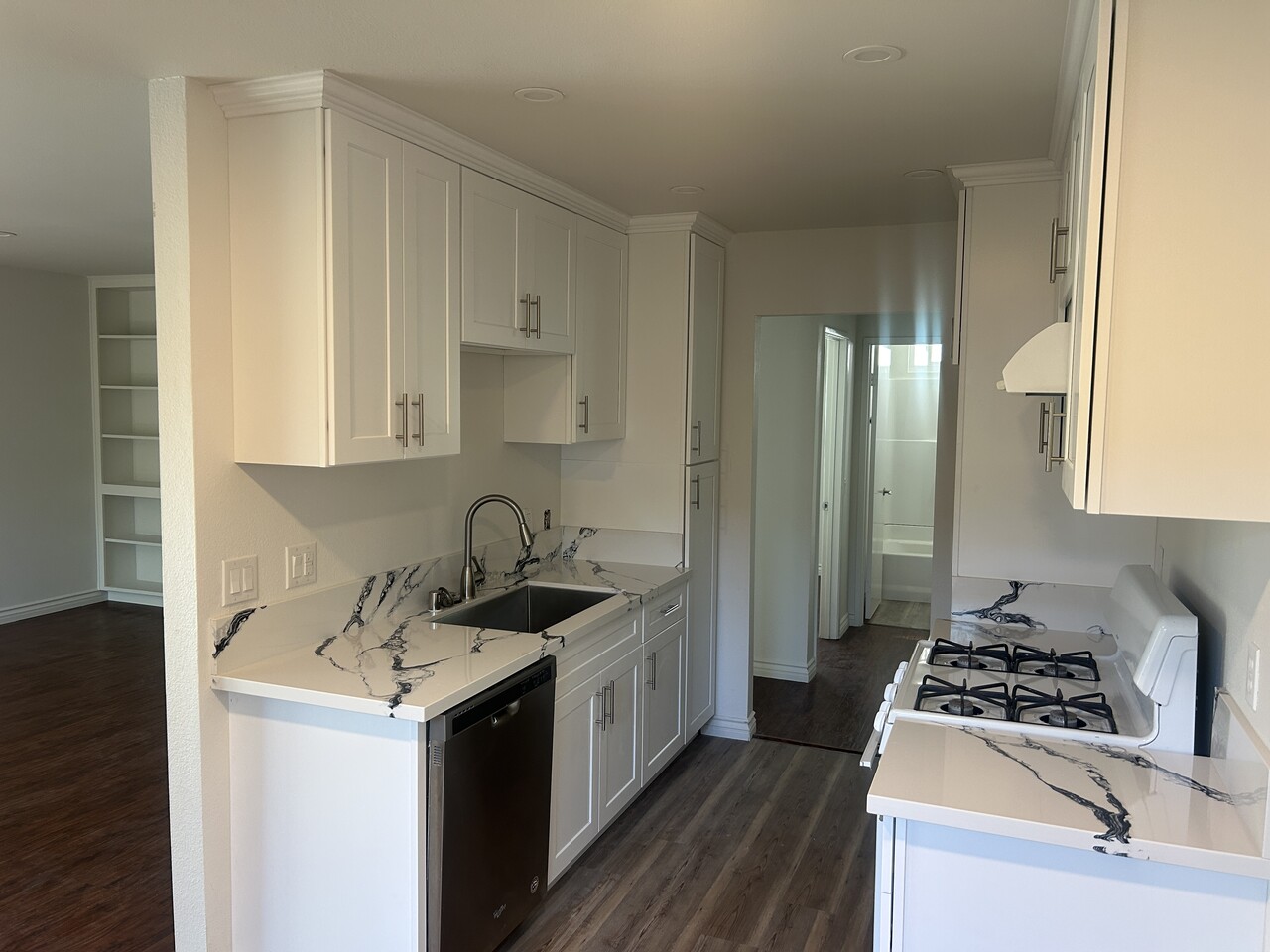 New paint, New kitchen cabinets, New bathtub and hardwood floor.
