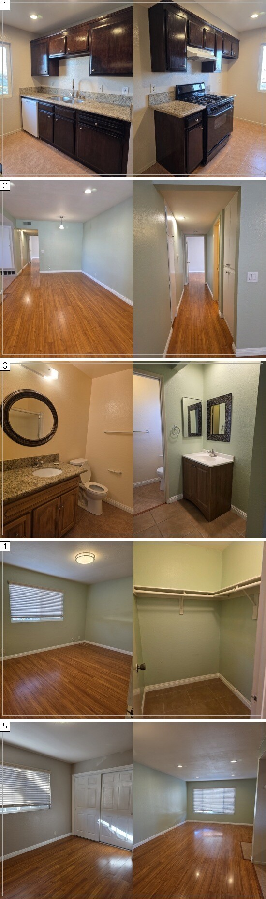 Recessed LT/ Granite kitchen countertop/ marble vanities/ laminated floor throughout