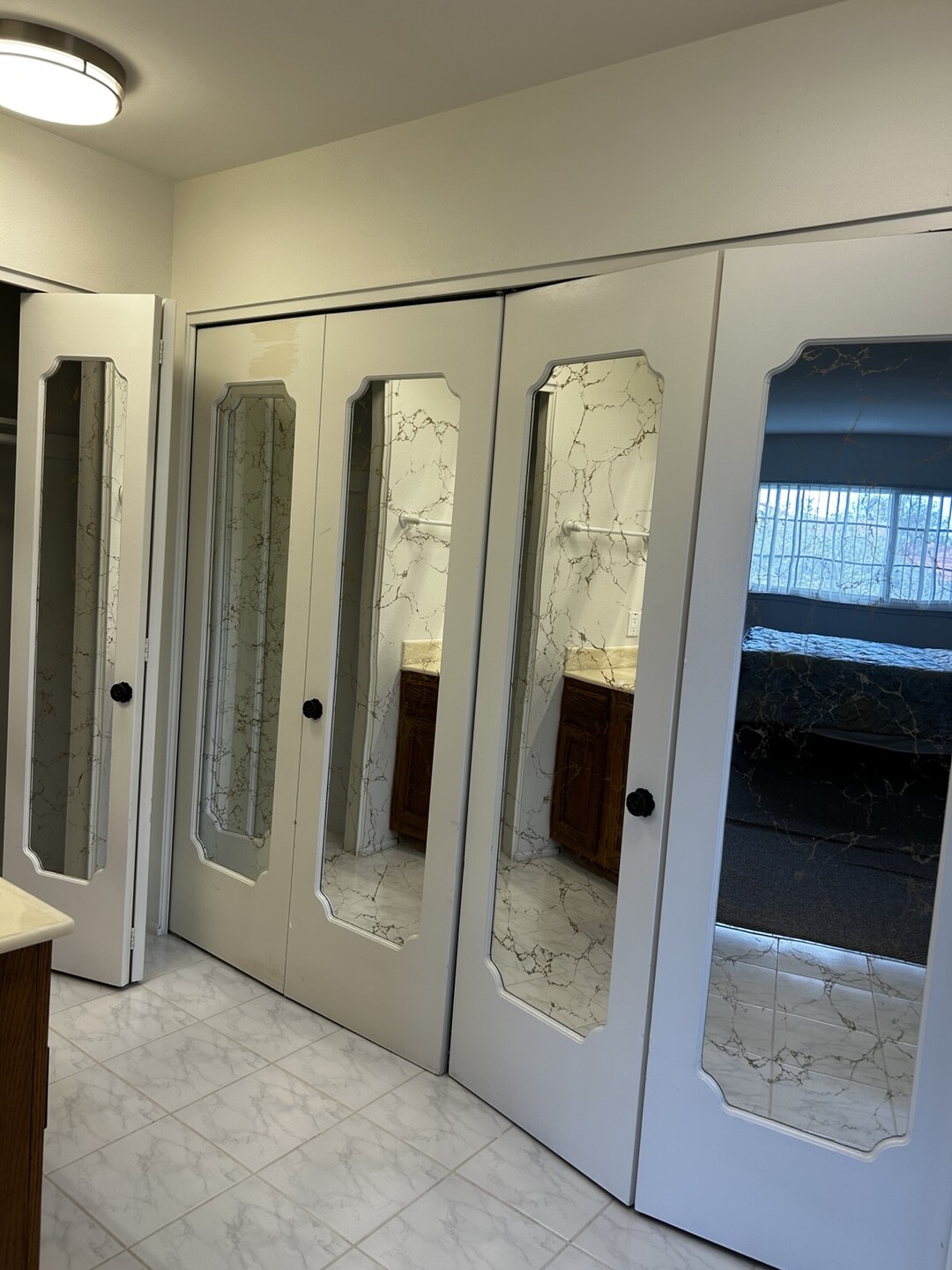 퀸사이즈 침대, 보통 옷장 3배 크기의 큰 옷장과 서랍장, TV,  소형 냉장고, 전자렌지 구비되어 있습니다.