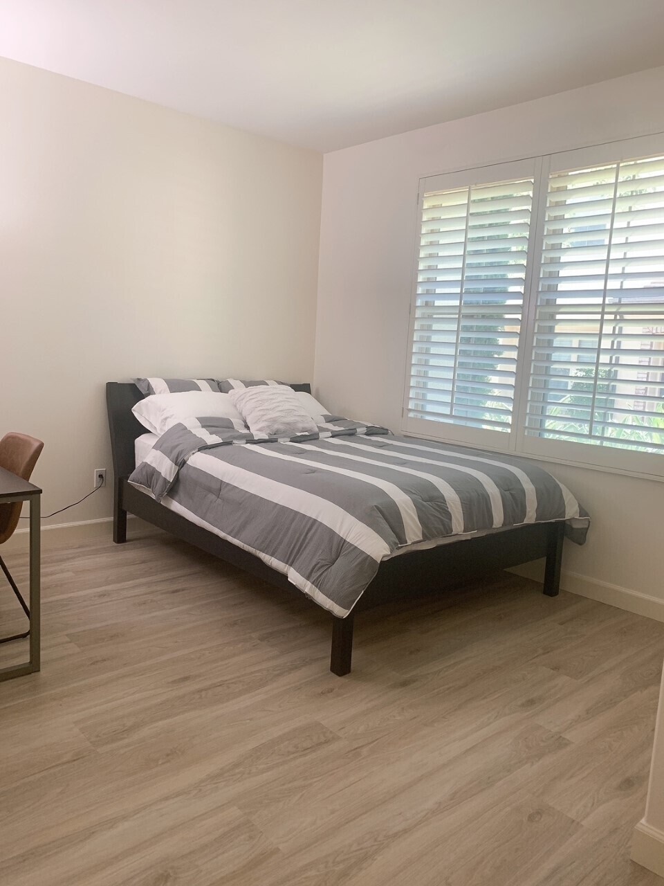 - 개인 화장실 + Fully furnished (queen 메모리폼 매트리스, 책상, 의자, 옷장, 서랍장 등)