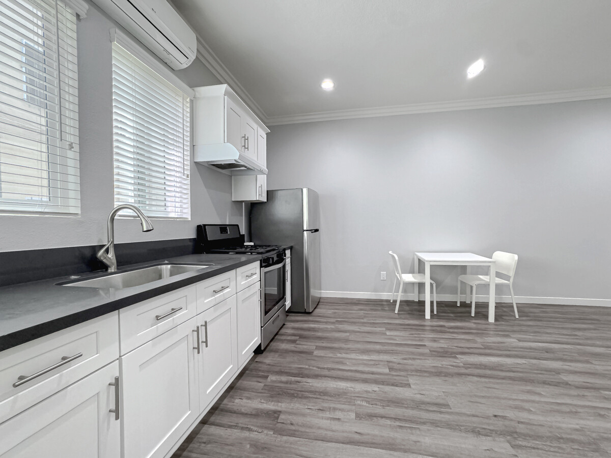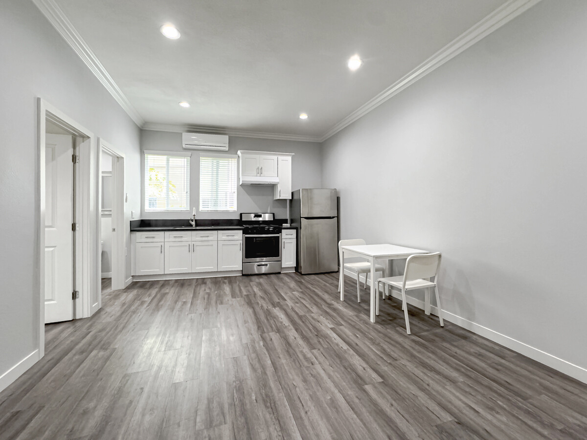 김스전기 근처에 위치한 모던하게 리모델링된 1 Bedroom 1 Bathroom 아파트입니다. 깔끔한 인테리어와 실용적인 구조로 쾌적한 주거 환경을 제공합니다.