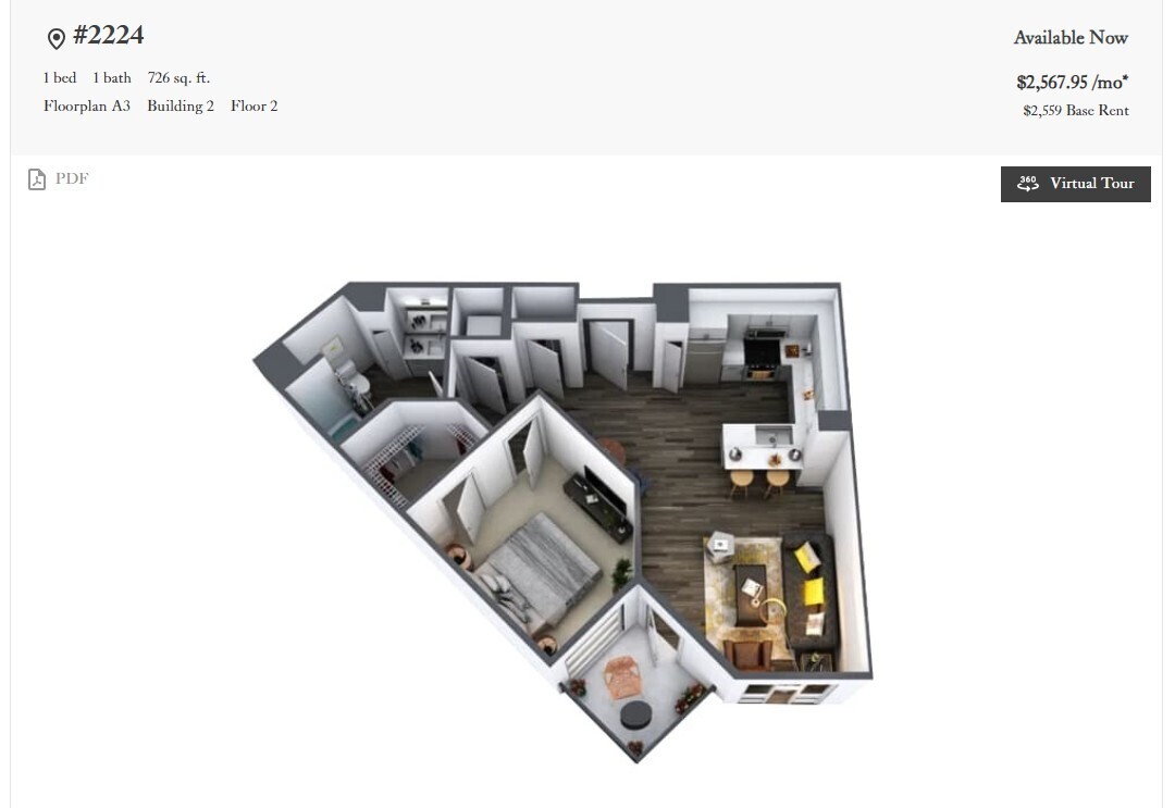 월 $2,200 + $2200 한달 디파짓