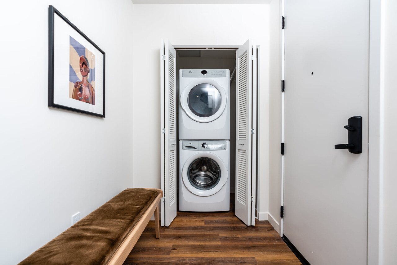 -스테인레스 스틸 주방 가전. -Full-size 드럼세탁기 및 건조기 in unit