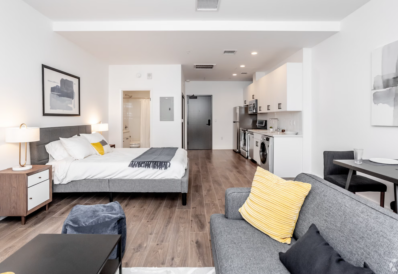 LA의 활기찬 중심지로, 마트, 은행, 커피숍 등 주요 편의시설을 도보 3분 이내로 모두 이용할 수 있는 뛰어난 입지입니다.