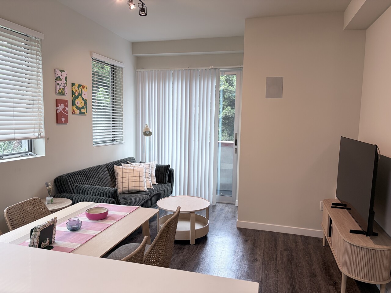 식탁, TV, 인터넷 , 모든 주방집기 .전기주전자, 토스터 , 청소기, 세탁기, 건조기,냉장고, 식시 세척기 , 오븐 모든 게 갖춰진 서비스 아파트입니다. 몸만 들어오시면 됩니다.
