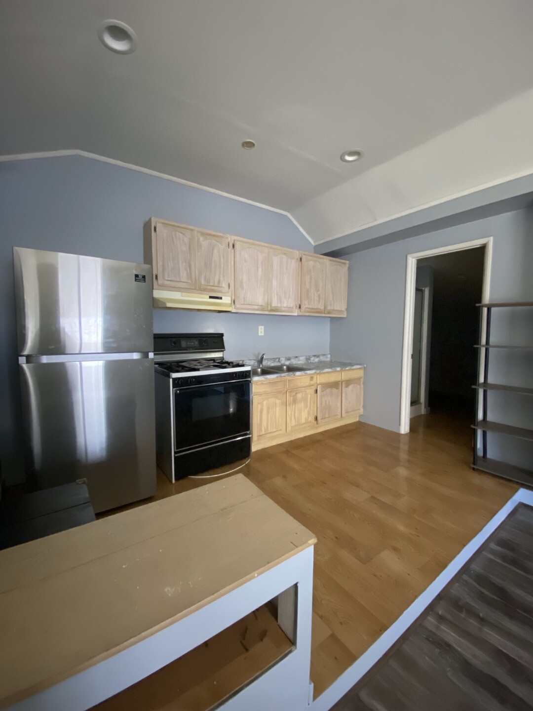 리빙룸에 부엌이 있고, 화장실과 샤워장이 있습니다.