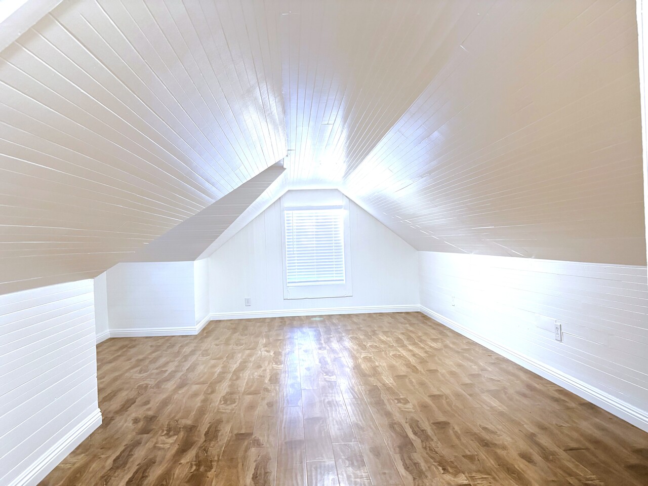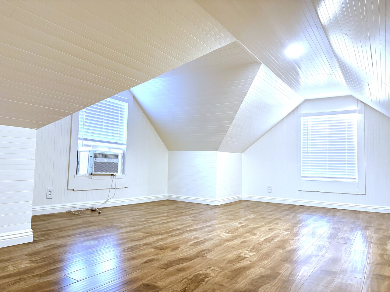 아래층에 방 1 화장실 1, 윗층에 홈 오피스나 방으로 쓸 수 있는 넓은 공간
