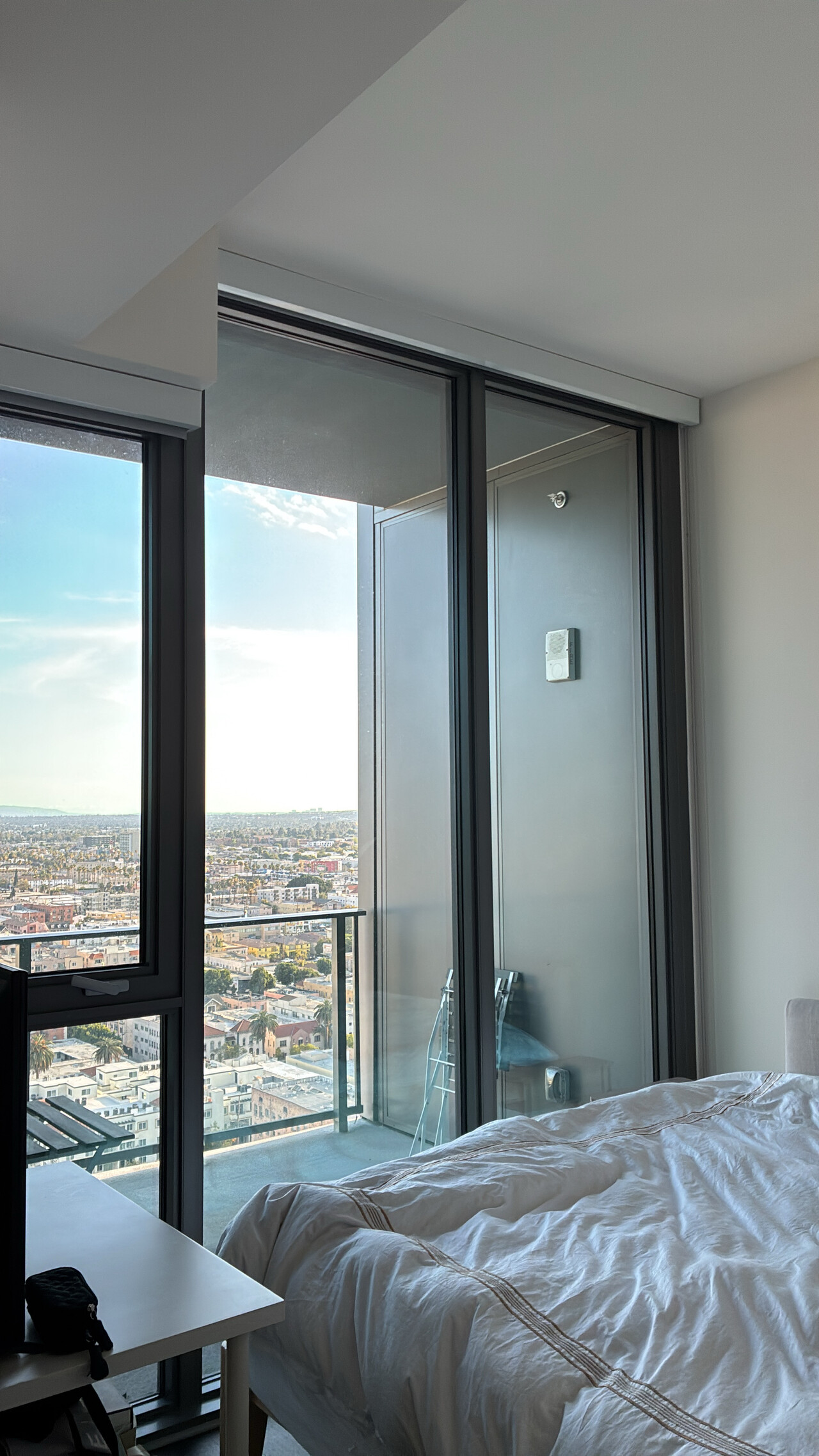고층, 남향이라 조용하고 뷰도 좋습니다. 통창이라 탁 트인 엘에이 전체 뷰를 즐기실 수 있고, 발코니도 있어서 왠만한 고층 루프탑바 보다 좋은 경치 감상 가능하십니다. Kurve 내에서도 발코니 있는 유닛은 드뭅니다.