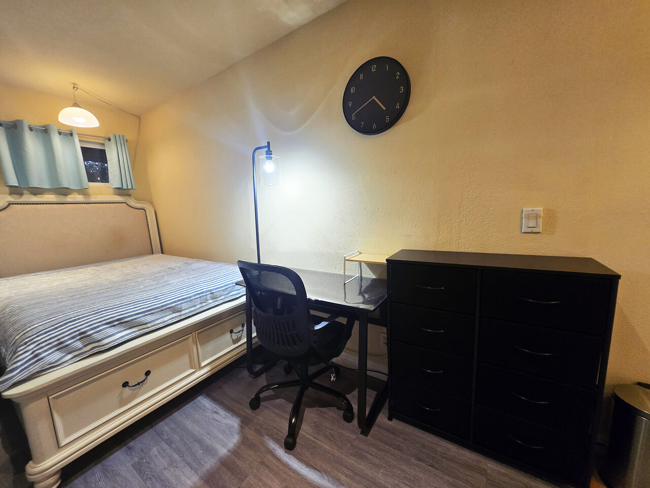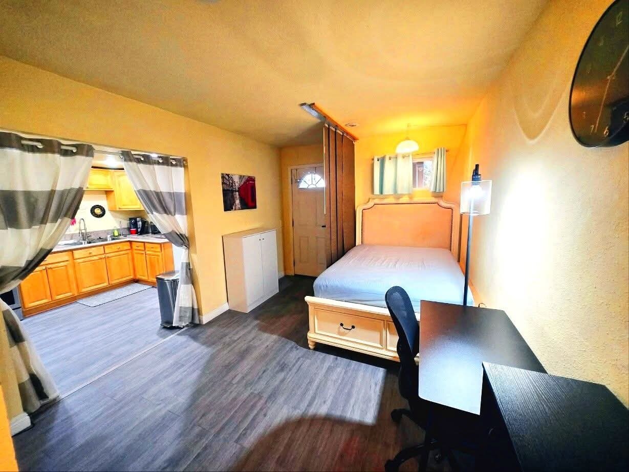 깨끗하고 옆마당에 있는 입구 따로 되어 있는 아주 조용한 studio 별채 입니다. 스튜디오. Central 히팅 & 에어콘, 현대식 Remote 조명 시스템, 좋은 재료로 되어있는 full size 부엌, Full size 옷장 2 개, 전체 마루 바닥과 화장실은 타일바닥, full bathroom, 1년반 된 새 냉장고, microwave, disposer, stove/oven, full size 침대, 식탁 & 의자, 서랍장과 책상 & 의자, 빨래 햄퍼 가구, 모든 가구 완비, 세탁기 & 드라이기 바로 문 밖에 얼마전에 삼성 제품 드럼최신형으로 새거 사줬습니다. 늘 환한 Skylight 모든 전기 리모트로 조정, 비데 & 정수기도 Free 설치해 드렸습니다. 얼마전에 목욕탕도 새 것으로 바꿔줬습니다. 인터넷과 모든 UT 포함, 교통 편리 - 605 Freeway 5분 거리, 항상 안전하고 많은 street parking lot, 전기장판, 부엌에 즉석 뜨거운 물 장치, 인터넷이 wifi 와 선으로 연결해줘서 항상 빠르고 따뜻하고 시원한 집. $1,900 + 한 달 Deposit ,1년 계약 필수, 학생이나 직장인 한명만 살 수 있습니다, 집 안에서 금연, 애완 동물 안 됩니다.