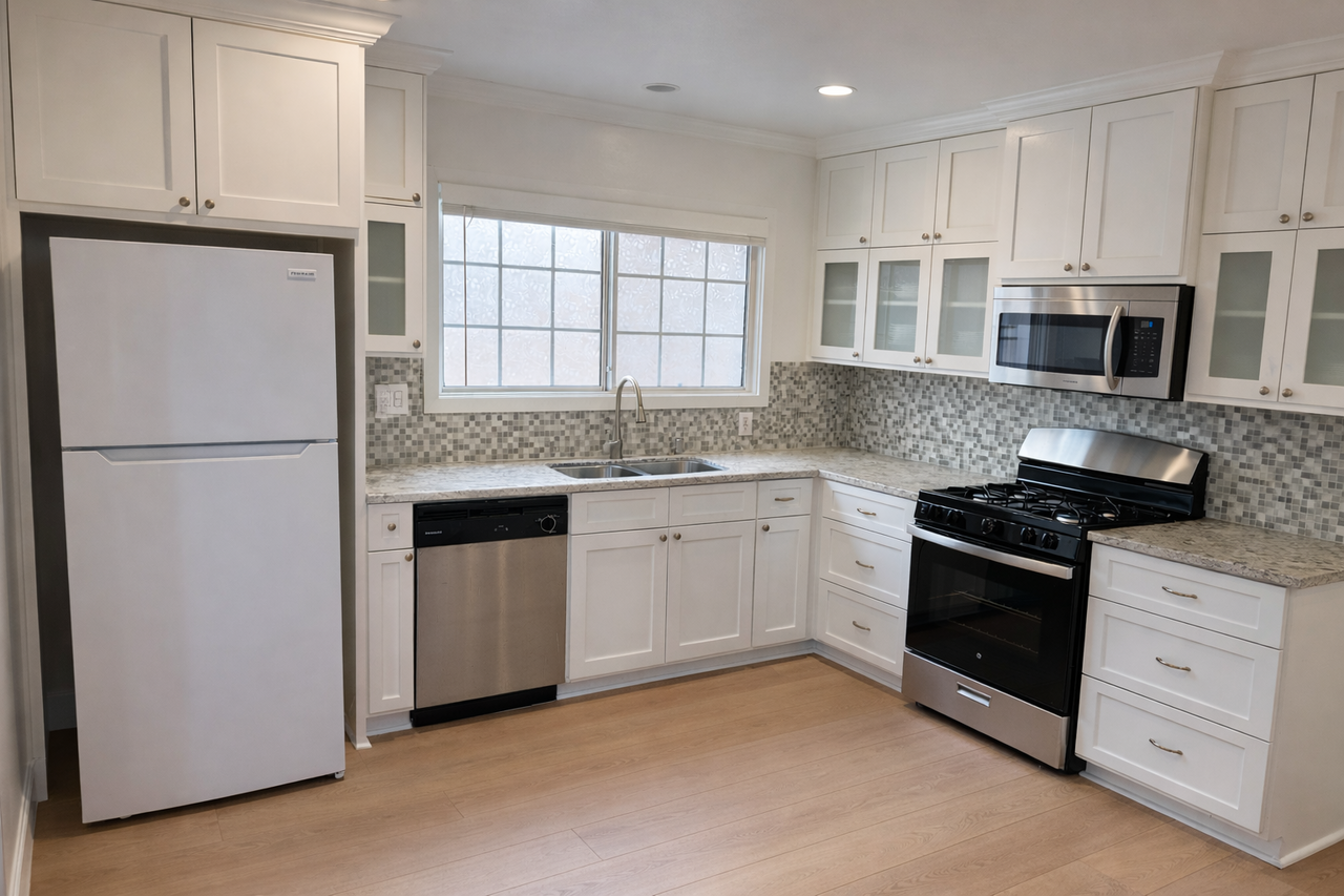 새 냉장고 & 새 가스 오븐 새 WASHER AND DRYER