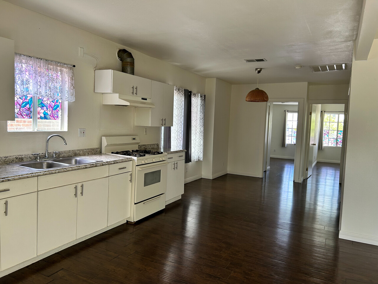 A warm and bright 3 bedroom 2 bathroom apartment with gate enclosure and 2 car parking spaces. Wood floors and air conditioning. Community laundry room.
