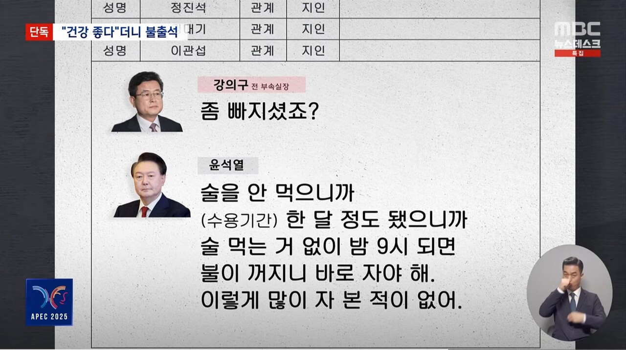 MBC 단독]윤석열 측근들에게 구치소에서 술 끊으니까 건강해져