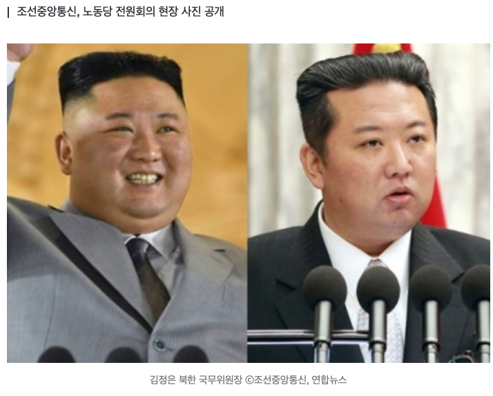 김 위원장은 이전과 비교했을 때 얼굴 살이 많이 빠져 턱선이 선명해진 모습이다.