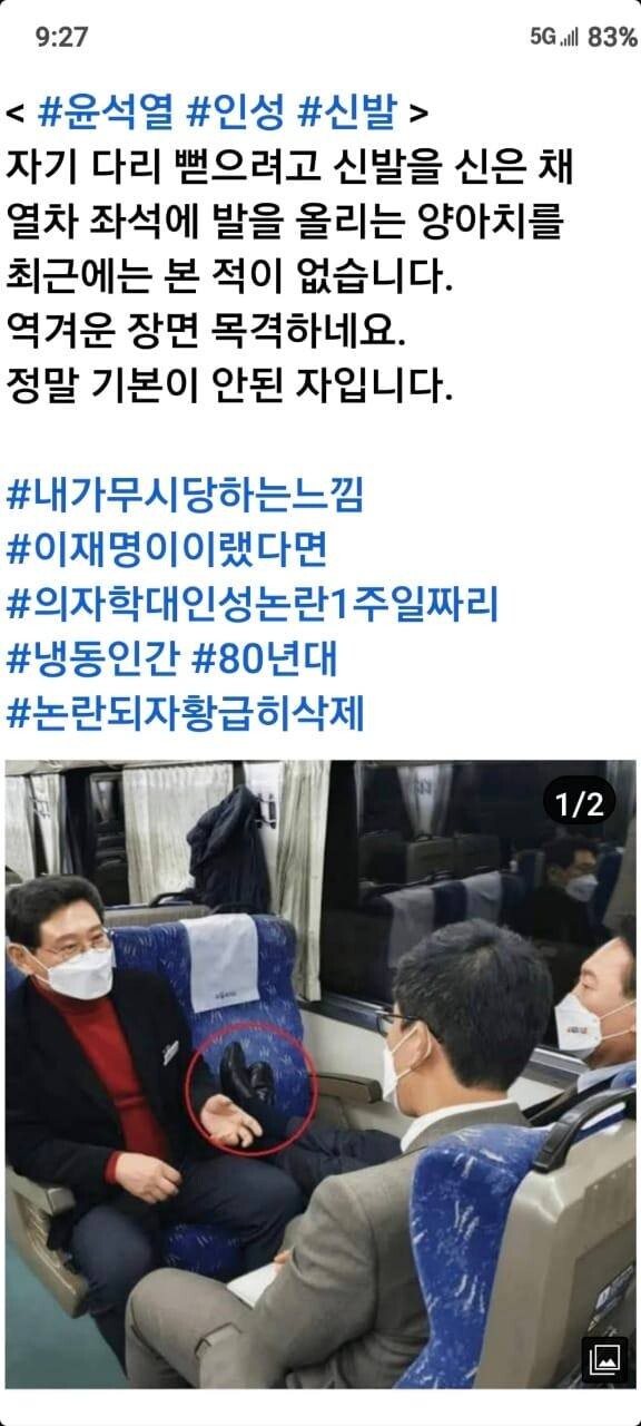 구두 밑바닥에 또 부적을 붙혔구만...거참,무당정치를 하겠다고 작정을 했구나..그 방향으로 앉아 뻗으라고 지시를 받었어..받았어..