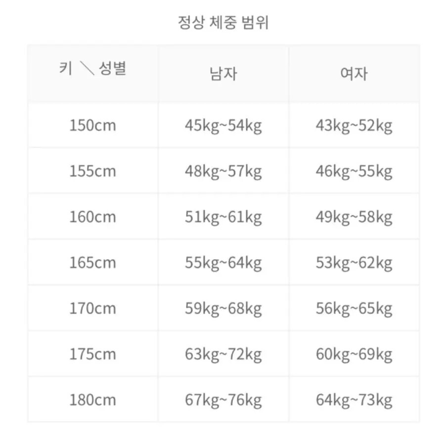 삼성병원피셜 정상 체중 범위