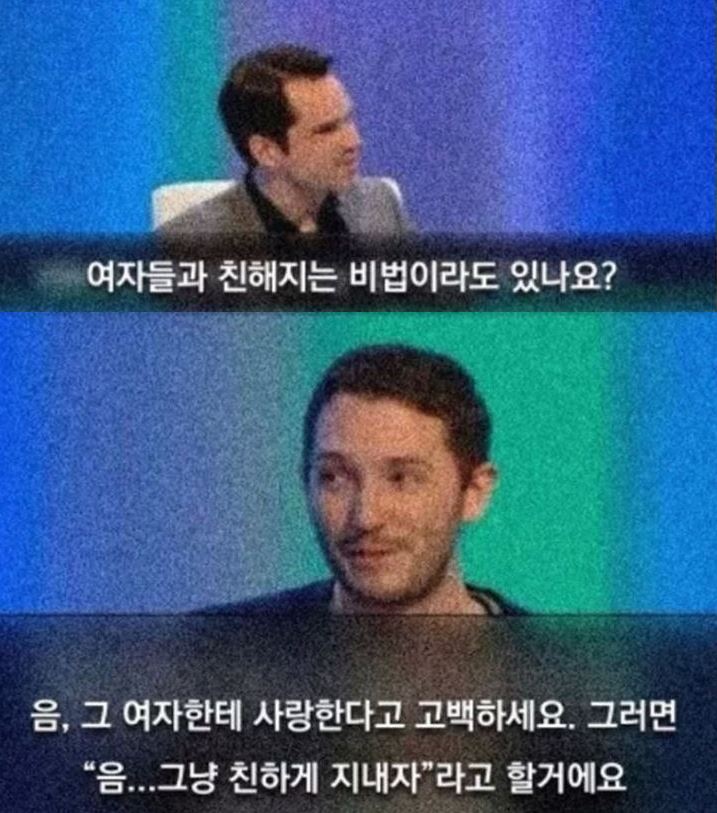 크하하... "남자들과 친해지는 비법이라도 있나요?"