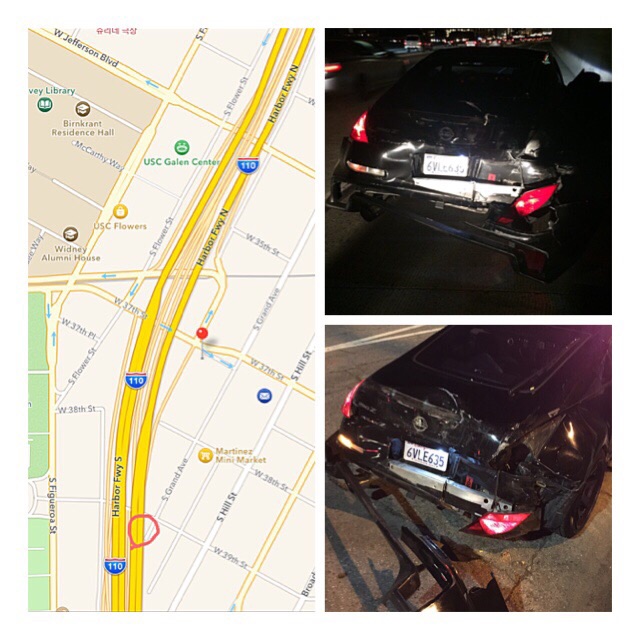 어저께 02/14 오후 7시경 110 n 하이웨이 hope st 방면으로 빠지는 근처에서 사고를 당했습니다