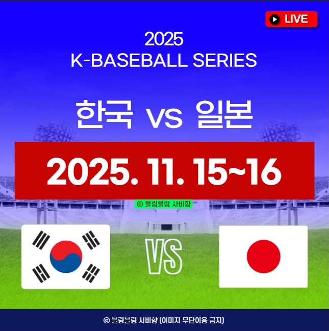 한국 일본 야구 평가전 무료 중계 시청 2025년 11월 15일 16일 WBC 한일전 방송 채널 K베이스볼 시리즈