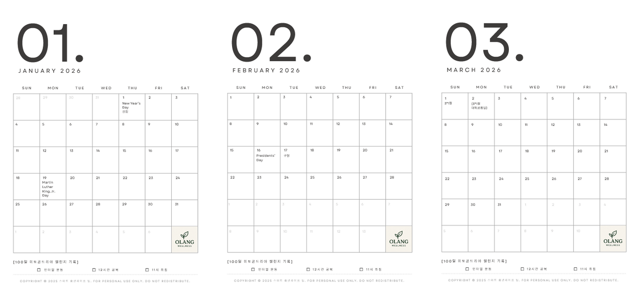 미토콘드리아 건강법 실천: 2026년 100일 습관 챌린지 달력 무료나눔